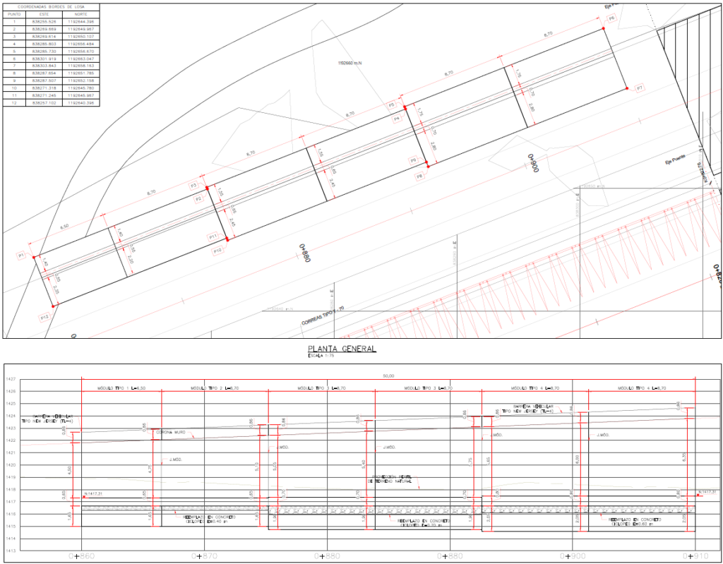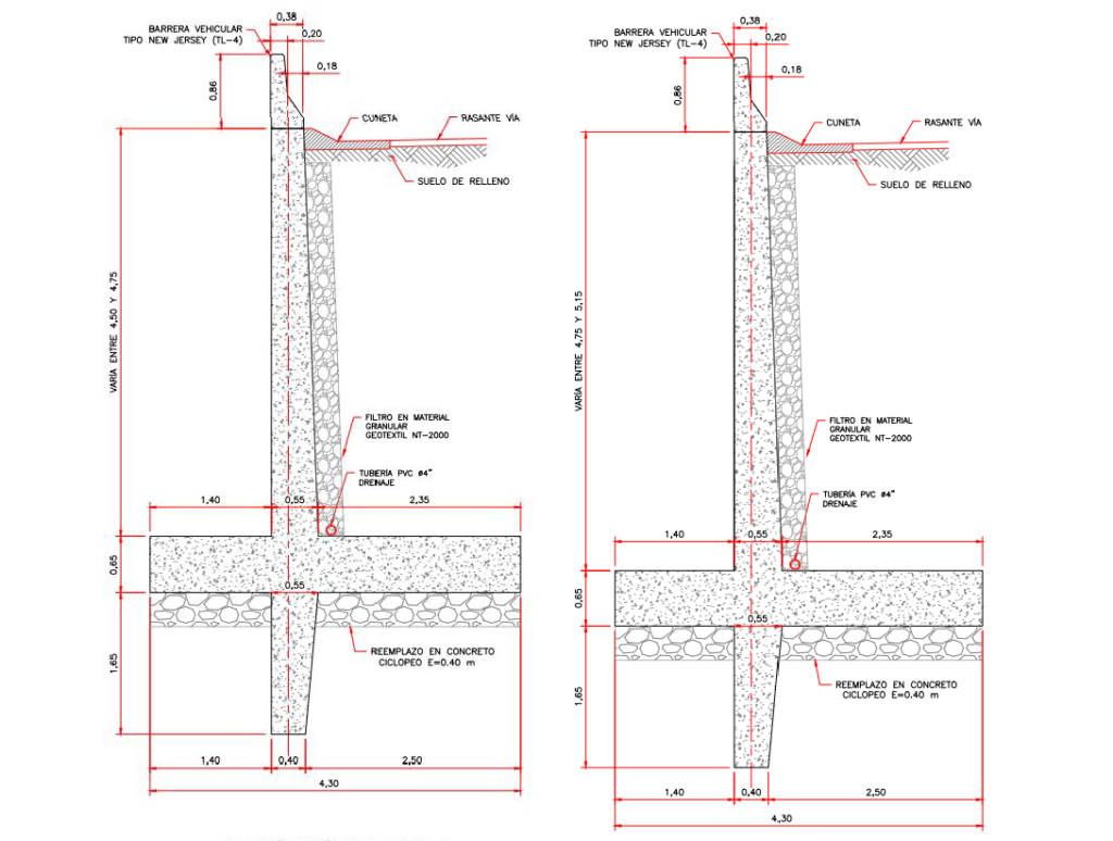 Diseño estructural del muro de contención en margen izquierda de la quebrada la montaña, ubicado en la vereda La verde, corregimiento de San Antonio de Prado, municipio de Medellín, en el marco de la atención a una situación de urgencia manifiesta declarada por el municipio de Medellín. La geometría del muro de contención se presenta a continuación.